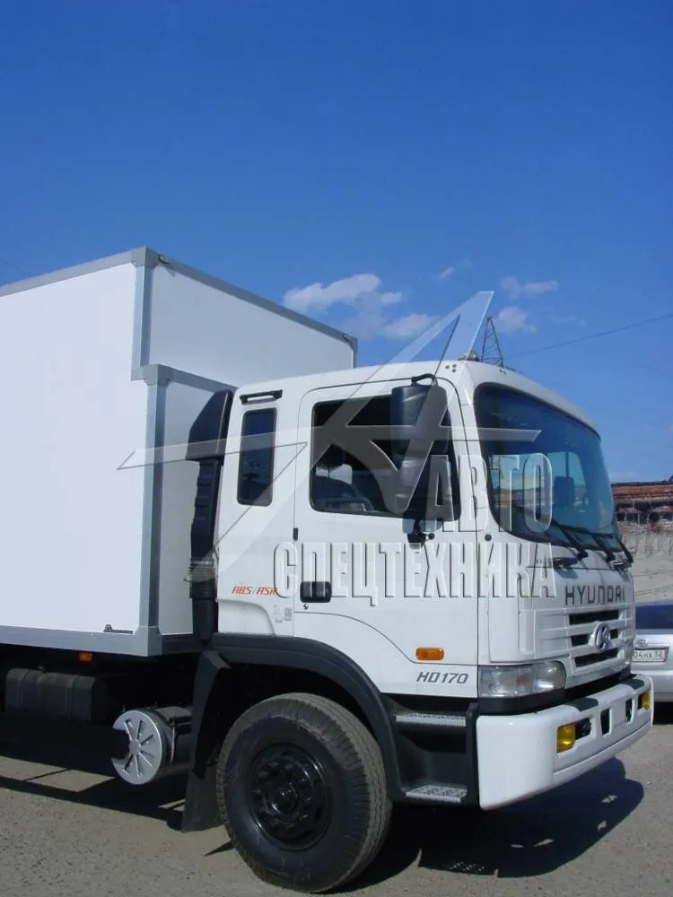 Тушевоз Hyundai HD-170 - среднетоннажный грузовой автомобиль с полной массой 17 000 кг и грузоподъёмностью фургона 8 500 – 9 500 кг. Перевозка туш в подвешенном состоянии в Волгограде. Грузоподъёмность тушевоза ниже составляет 2/3 от г/п фургона, это обусловлено смещением центра тяжести к потолку, устойчивостью автомобиля и особенностями фургона.